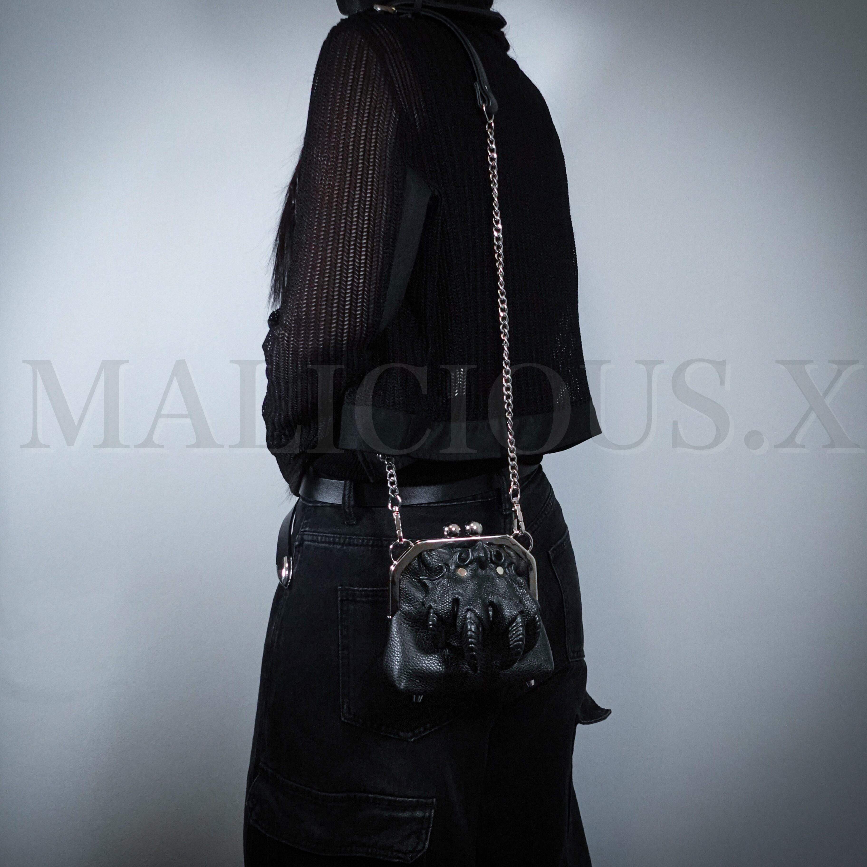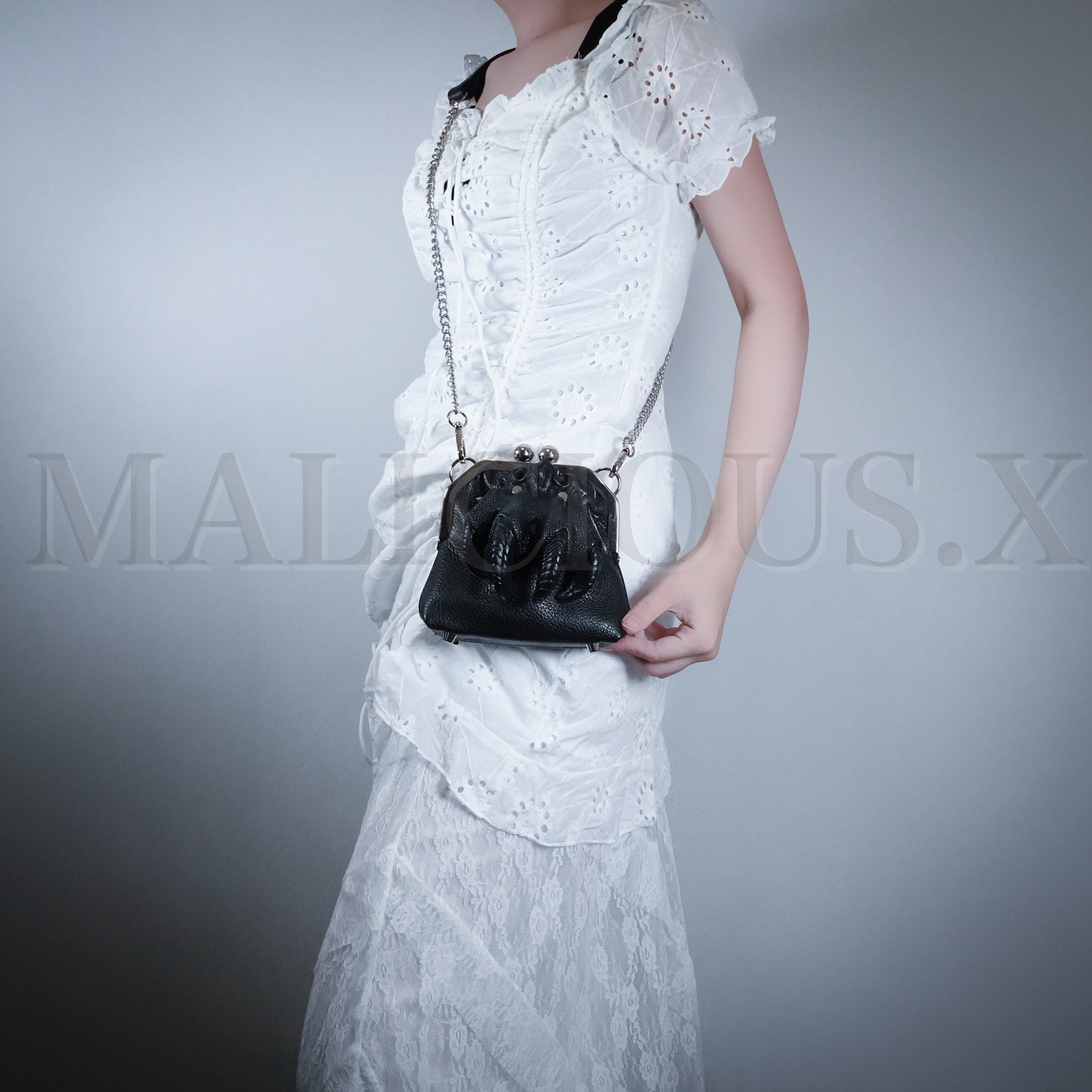 Eye metal clasp chain shoulderbag(S)Black/Ice Green