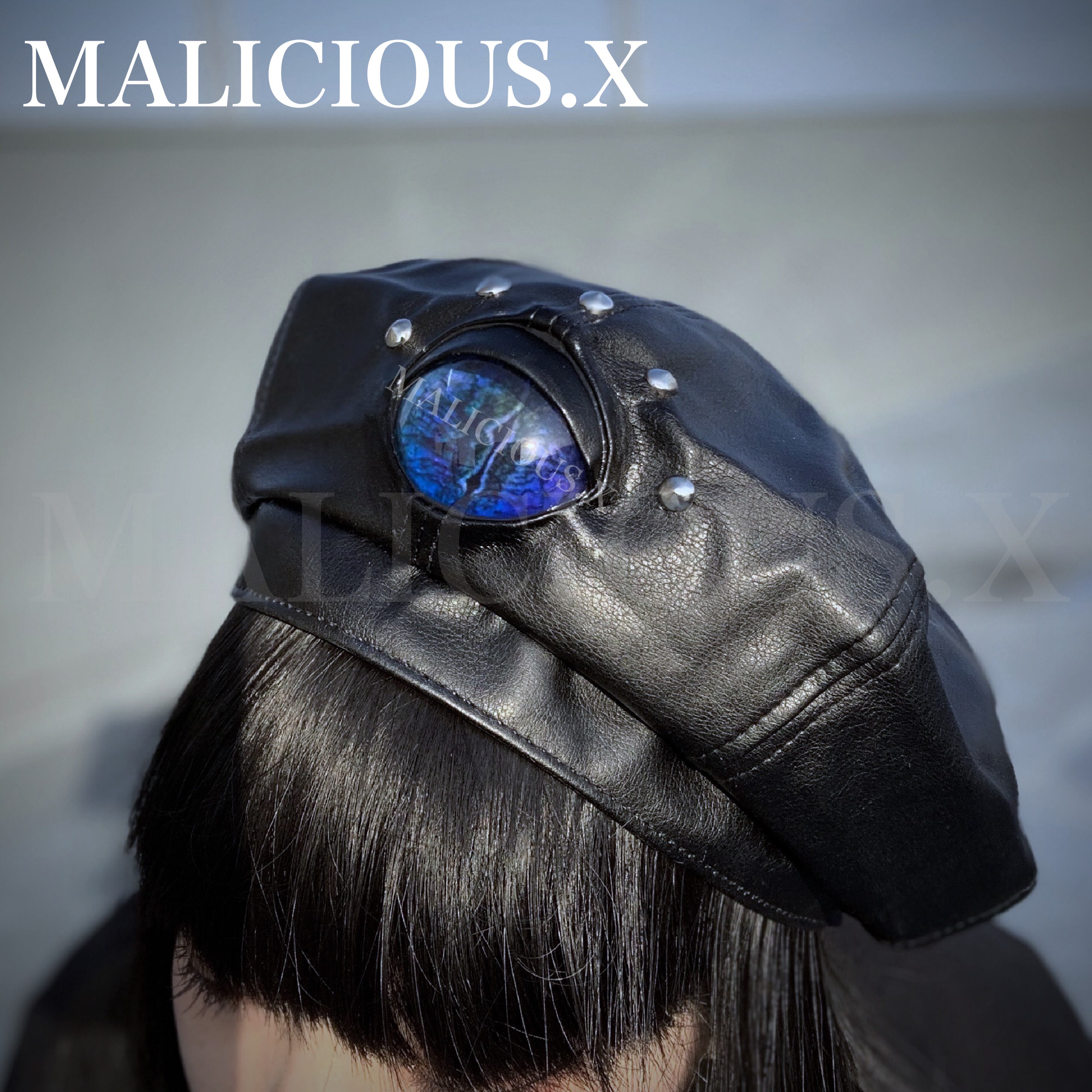 Reptiles(D)eye panel leather beret / purple