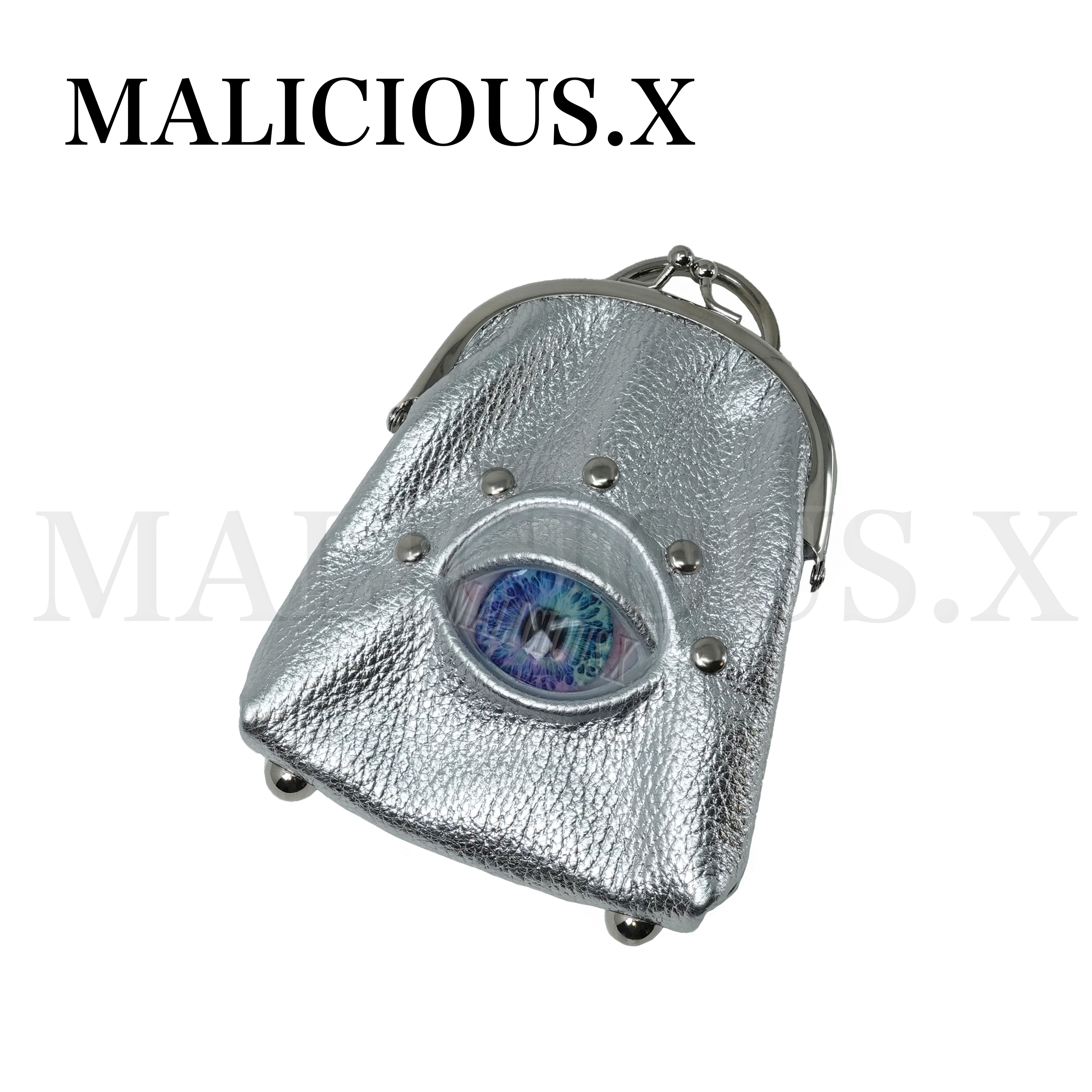 Eye O-ring metalclasp pouch (Silver)/ Blue marble